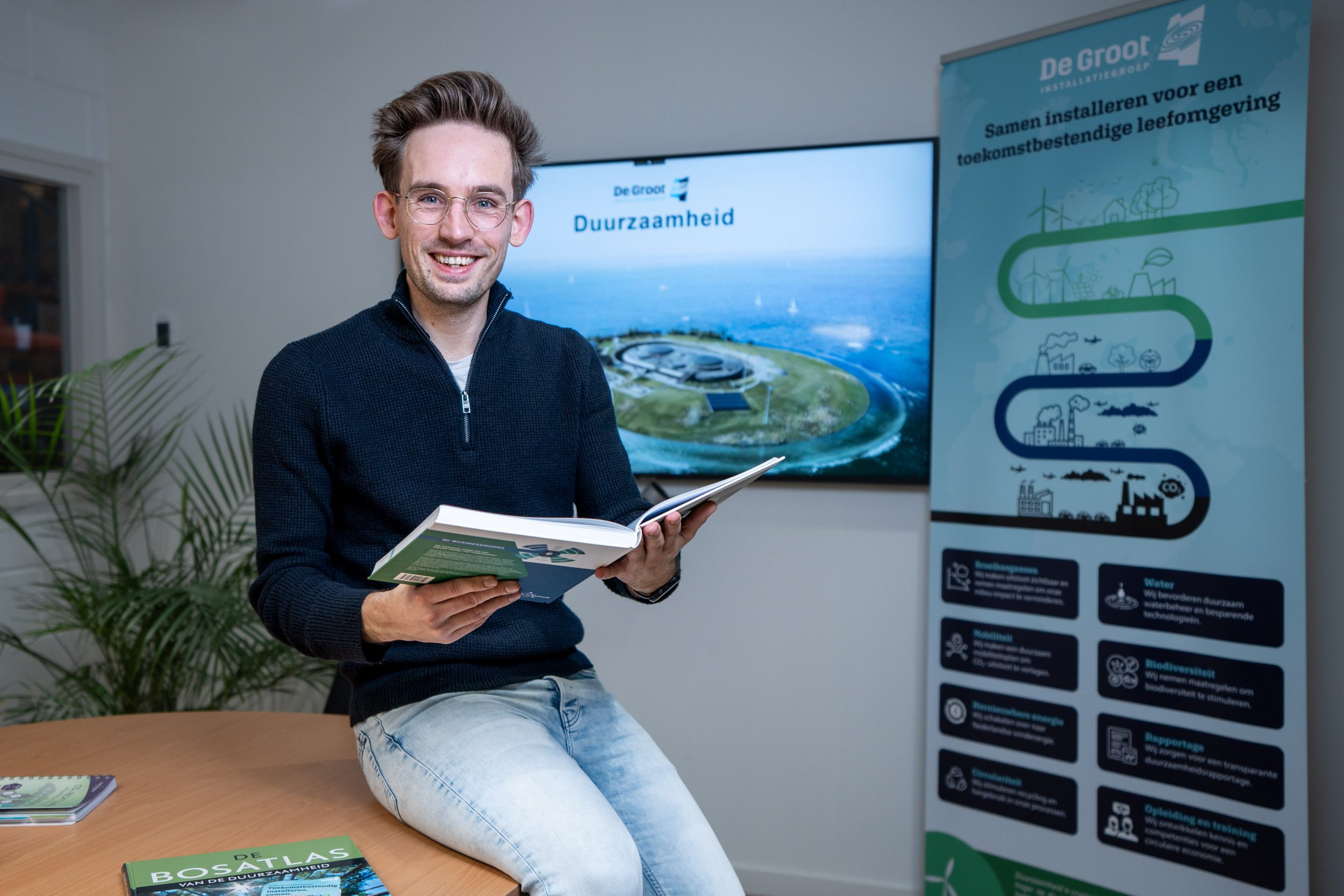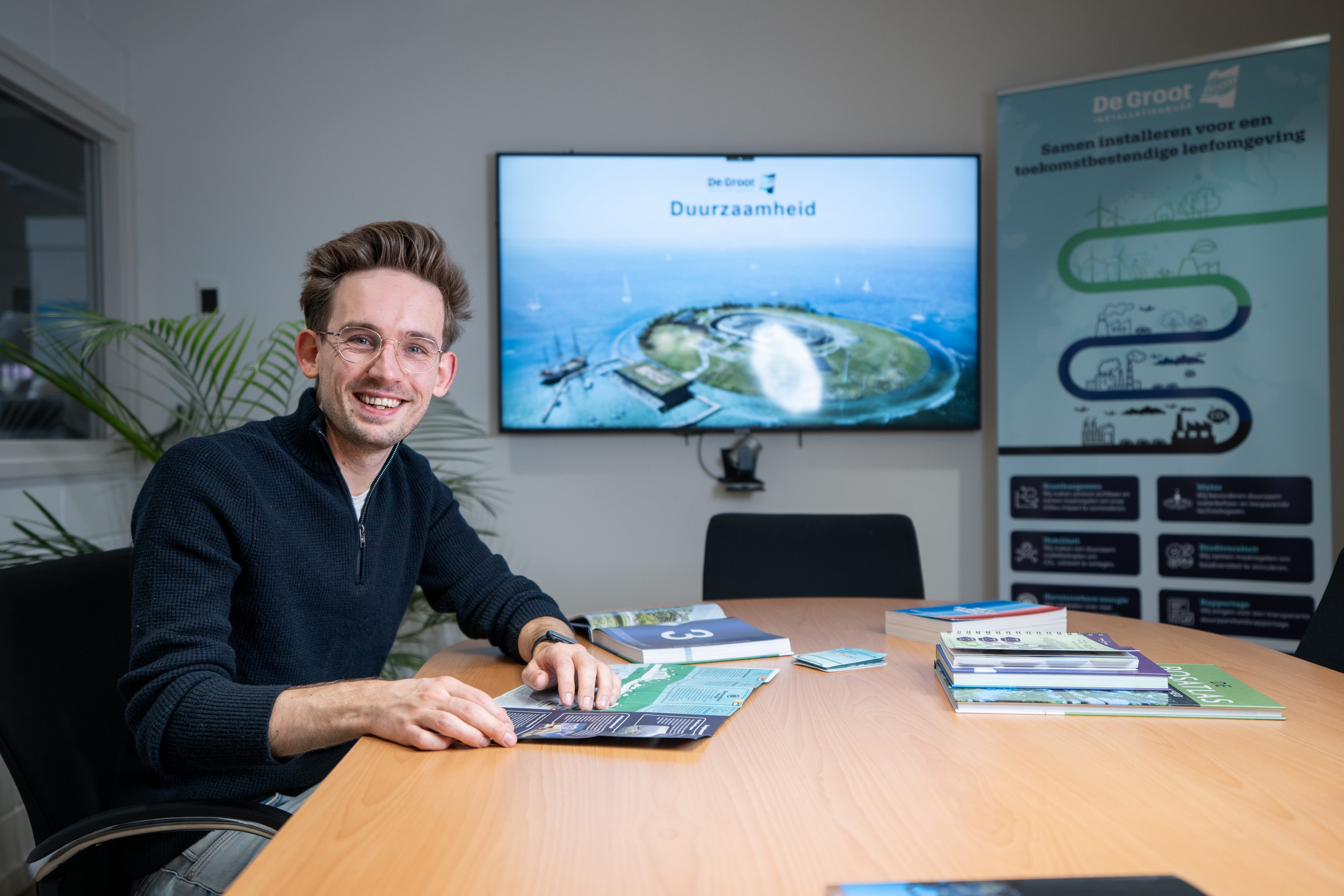 Mijn naam is Thomas Drenth, en ik werk in een duurzaamheidsfunctie bij De Groot Installatiegroep. In mijn rol help ik de organisatie om duurzamer te ondernemen en ondersteun ik de transitie naar een circulaire economie.